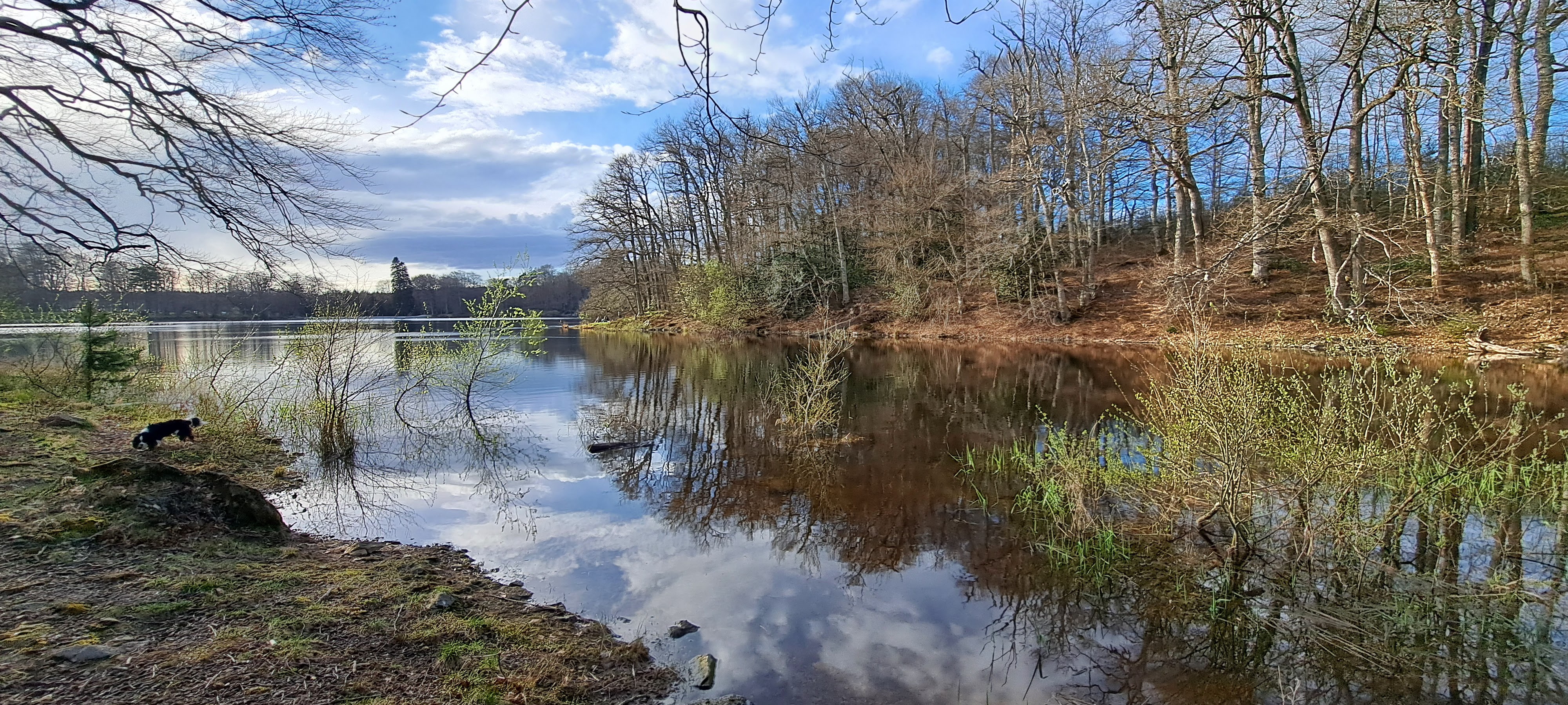 Petite balade autour du lac avec notre chien fort sympathique mais attention toute fois aux passages un peu compliqués par de nombreux arbres couchés en travers des différents chemins.